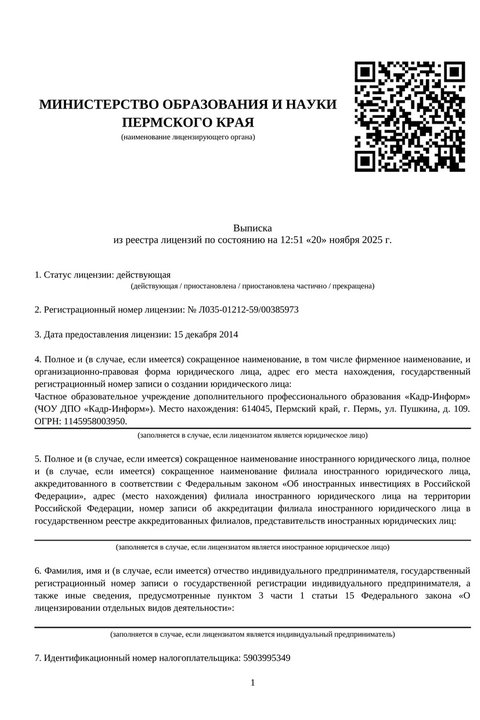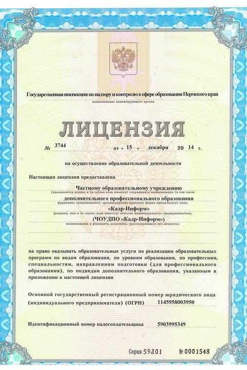 ЧОУДПО "Кадр-Информ" не является бюджетным учреждением, а, соответственно, согласно Постановления Правительства РФ от 10.07.2013 N 582 (ред. от 07.08.2017) "Об утверждении Правил размещения на официальном сайте образовательной организации в информационно-телекоммуникационной сети "Интернет" и обновления информации об образовательной организации" данная информация является коммерческой тайной.