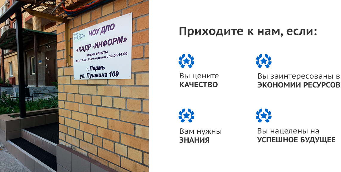 С момента своего основания в 2002 году учебный центр дополнительного профессионального образования в Перми - ЧОУДПО "Кадр-Информ" завоевал репутацию одного из лучших учебных центров Перми и Пермского края.